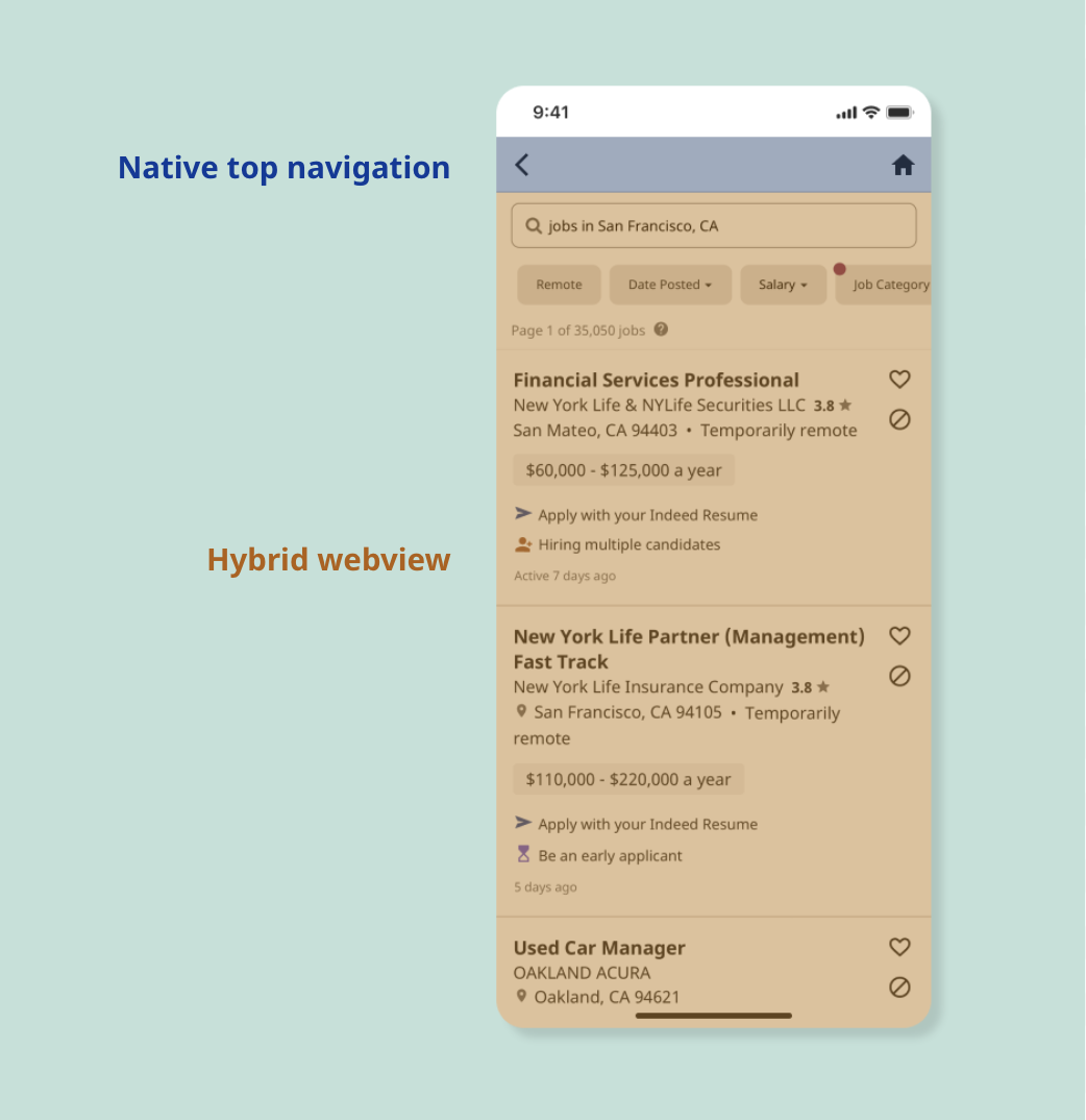 The Challenge: Indeed’s hybrid app used web-style navigation that felt foreign on mobile devices.