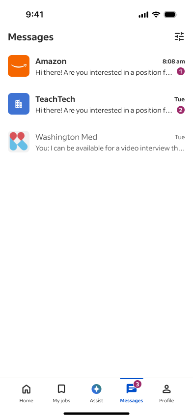 - Conversation Details: Centralized page with all context needed for conversations, with real estate for future features like My Jobs integration